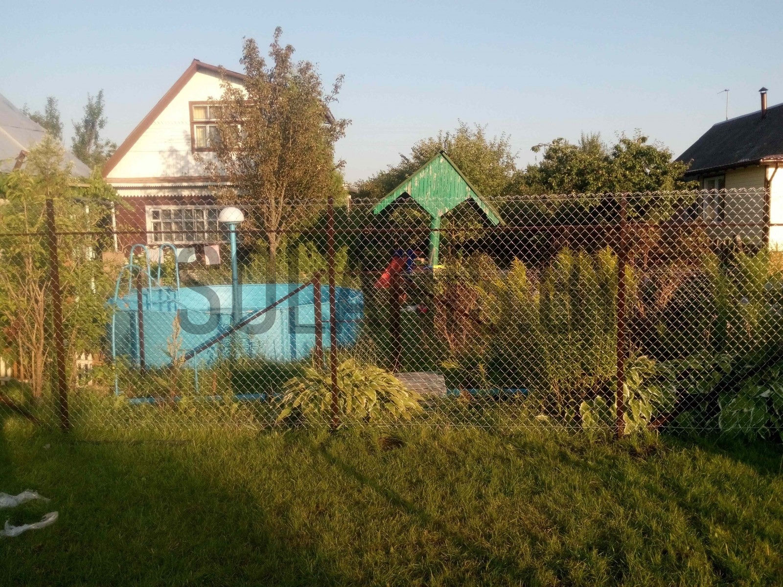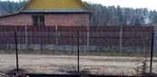 Стандартный забор из сетки рабицы усиливается за счет наваривавания труб 20х20 по всей длине между столбами забора . Такой забор гораздо прочнее и долговечнее обычного.