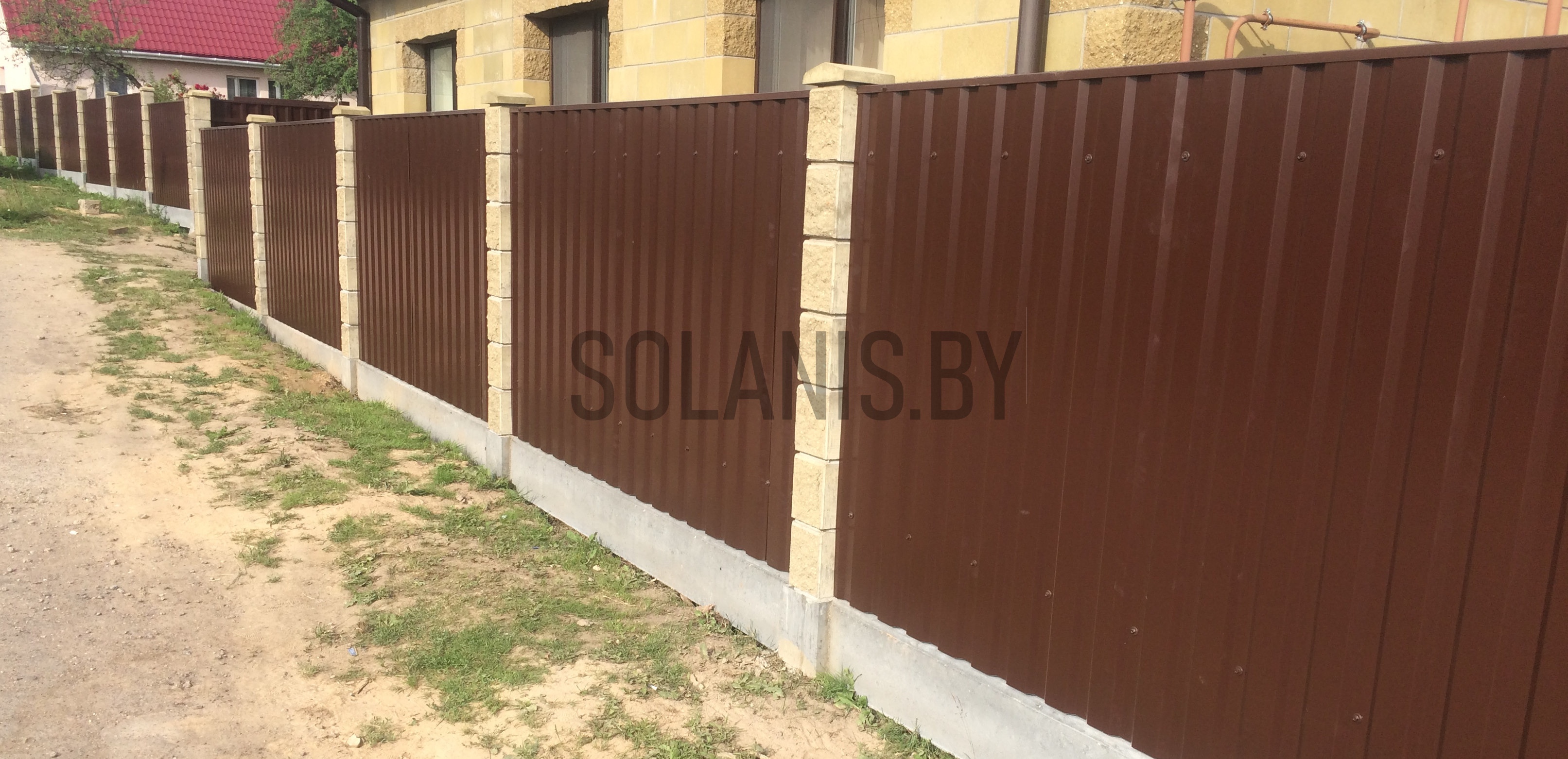 Мы устанавливаем заборы из Металлопрофиля на сборном фундаменте под ключ в Минске Минском районе Минской области, на заказы длиной свыше 100 м можем выезжать по всей Беларуси.
